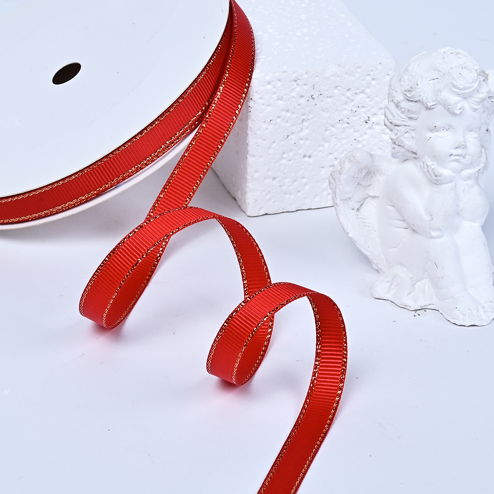 3/8“(9mm)Gold Metallic-Edge Grosgrain Ribbon 029
