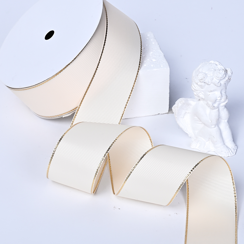 1"(25mm)Gold Metallic-Edge Grosgrain Ribbon 640