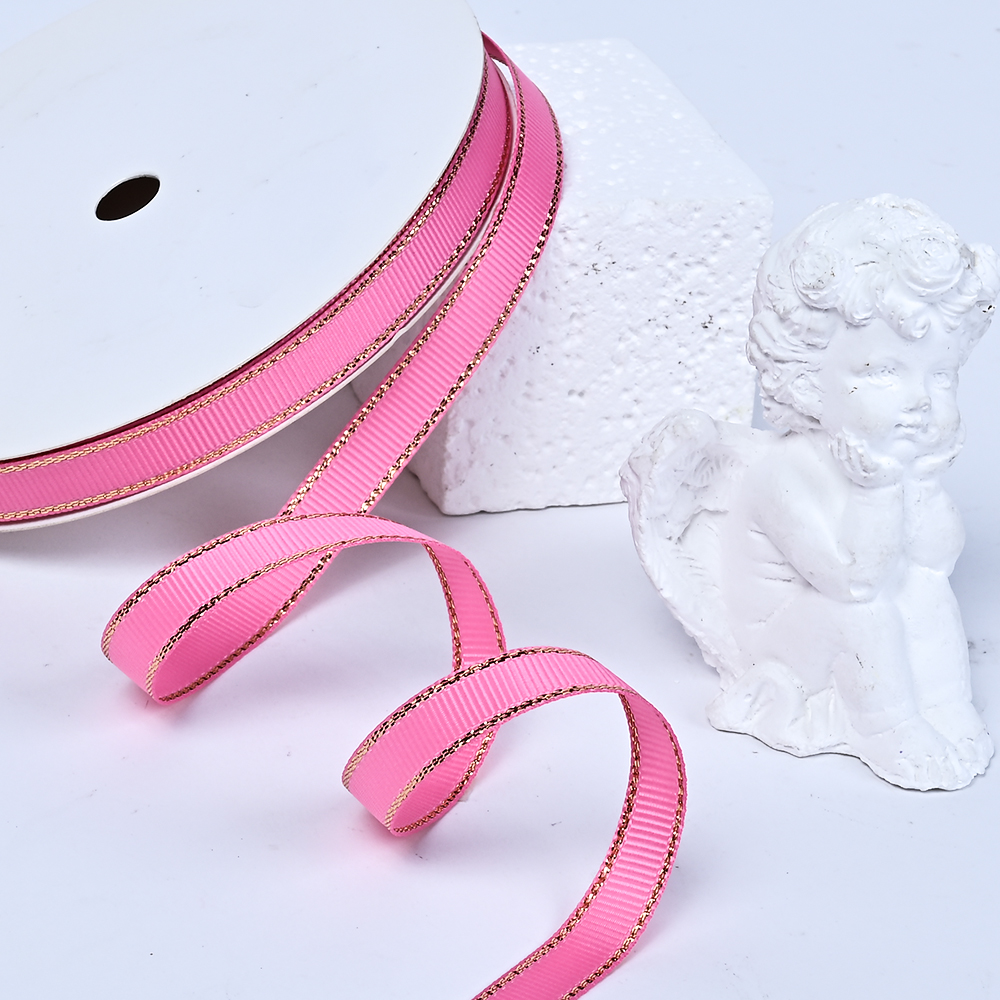 3/8“(9mm)Gold Metallic-Edge Grosgrain Ribbon 156