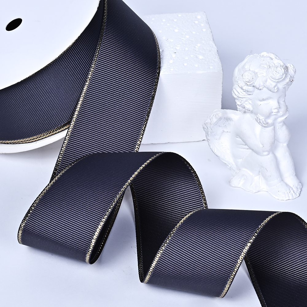 1-1/2"(38mm)Gold Metallic-Edge Grosgrain Ribbon  077