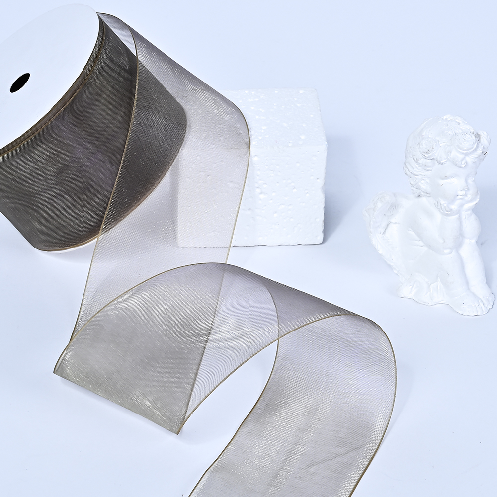 2"(50mm)Organza Ribbon 4176 лента органза перламутровая 70 ярдов серая