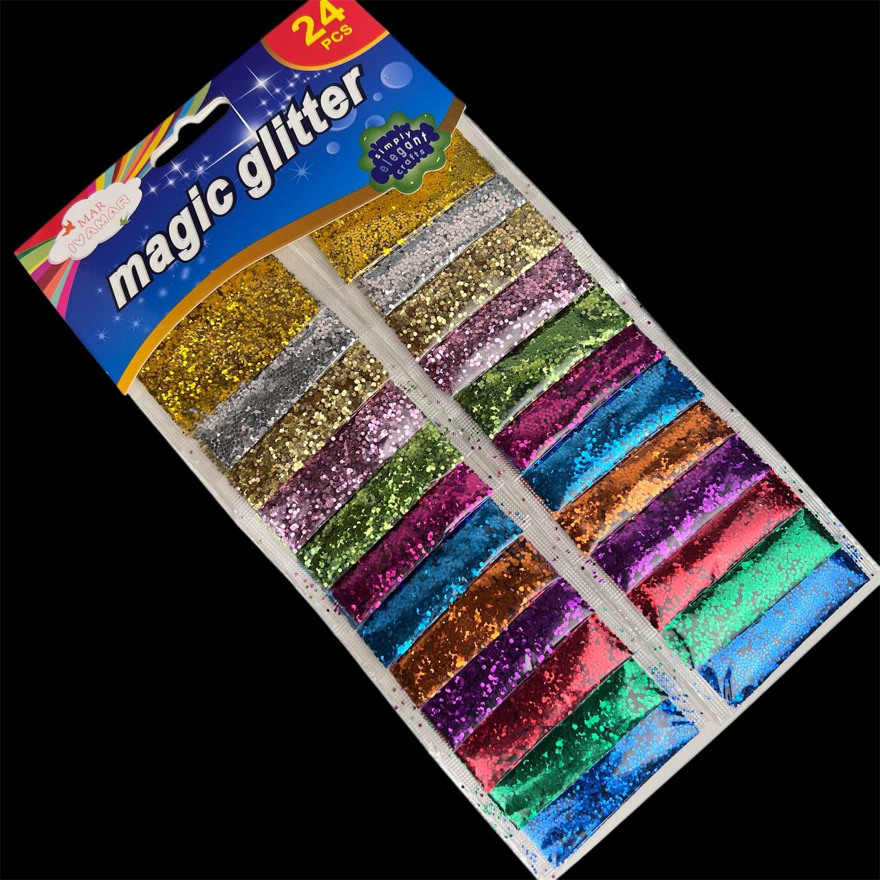 Глиттер - это незаменимый аксессуар для творчества и дизайна. Он имеет сухую рассыпчатую структуру из мелких частиц размером 0,2 мм с переливающим эффектом. Широкая палитра цветовой гаммы позволит вам создать уникальные акценты дизайна в декорациях. В 1 уп 24 цвета. В 1 коробке 600 уп.