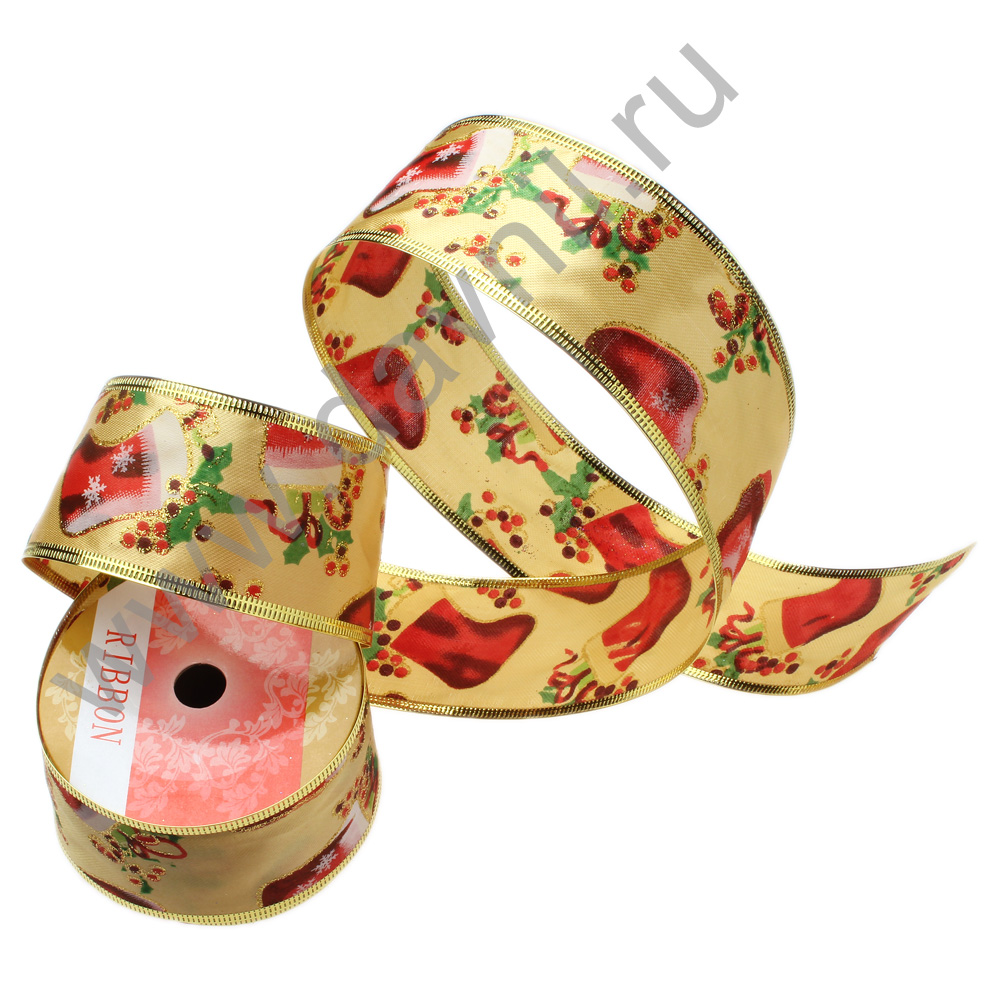Лента декоративная с проволочным краем 5 см* 2,7 м золотая 2/8