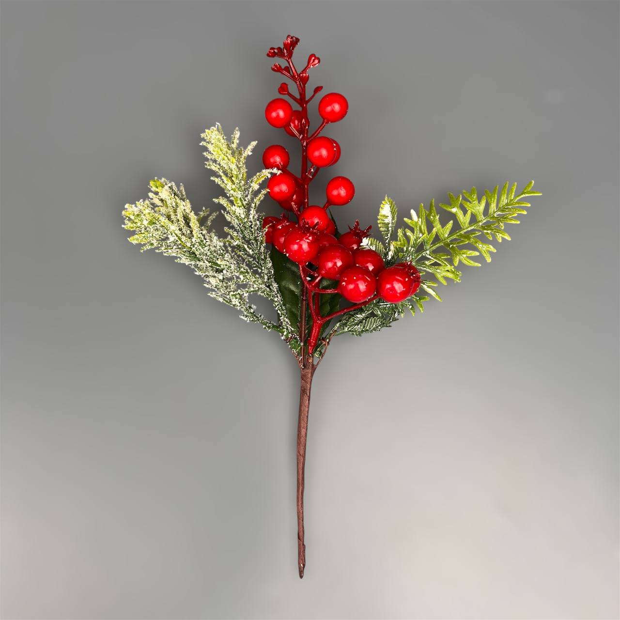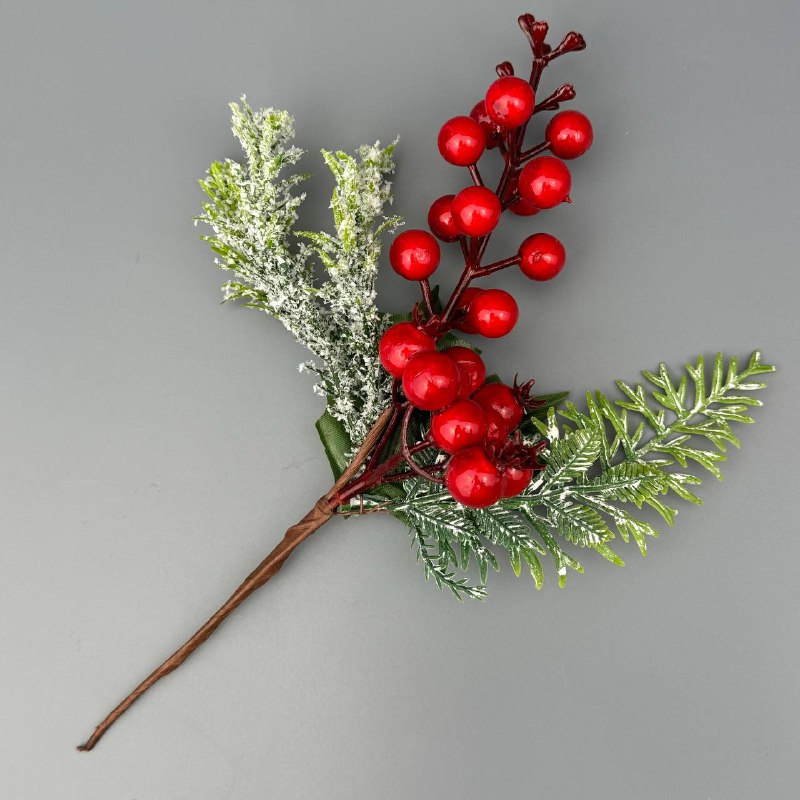Композиция декоративной веточки, украшенной новогодними красными ягодами - это смелое решение для создания праздничного настроения. Эти веточки не только позволят вам быстро украсить ваш интерьер, но и найдут широкое применение в рукоделии. Ветки изготовлены из высококачественных материалов, которые имитируют текстуру и цвет ели.