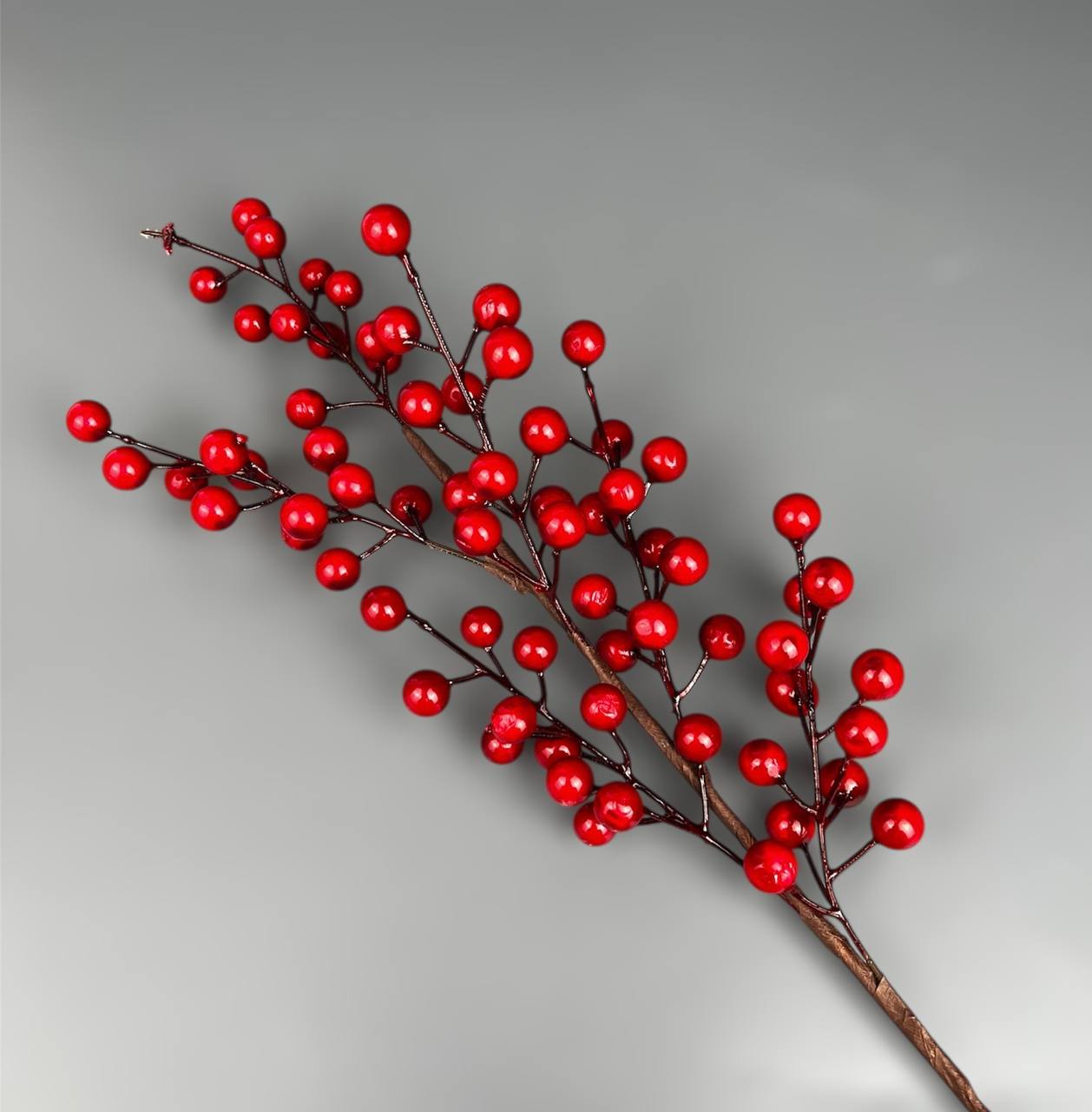 Композиция декоративной веточки, украшенной новогодними красными ягодами - это смелое решение для создания праздничного настроения. Эти веточки не только позволят вам быстро украсить ваш интерьер, но и найдут широкое применение в рукоделии. Ветки изготовлены из высококачественных материалов.
