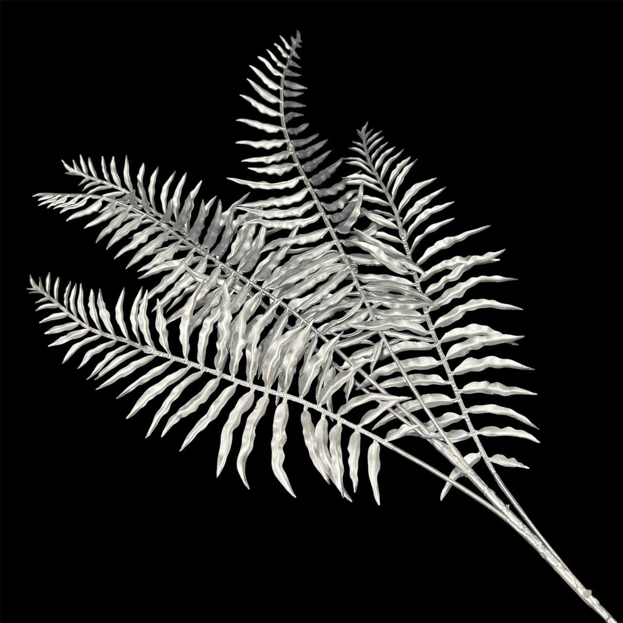 Новогодняя декоративная веточка папоротник 75 см серебро 2