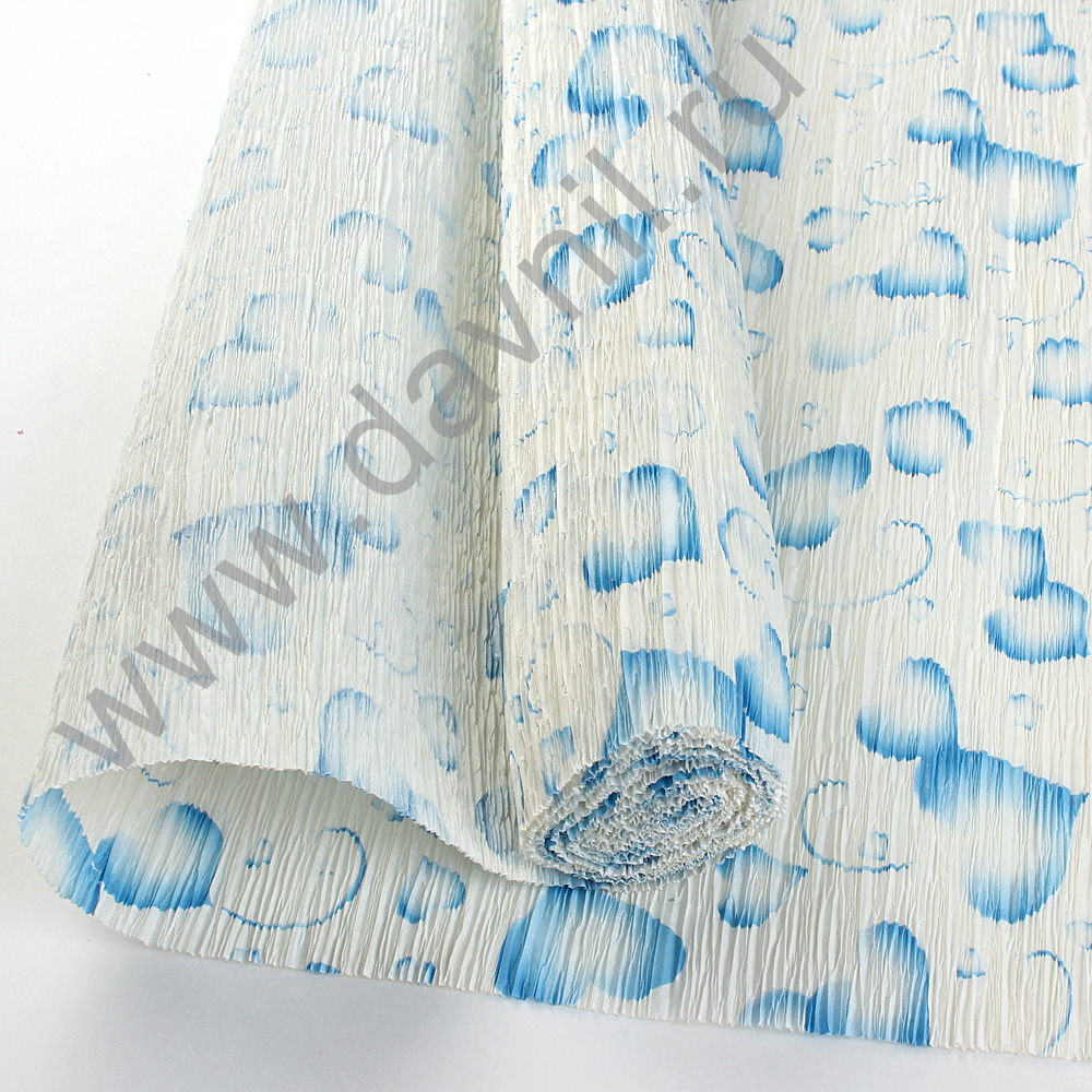 Бумага гофрированная 50 см 2,5 м белая с голубыми листиками