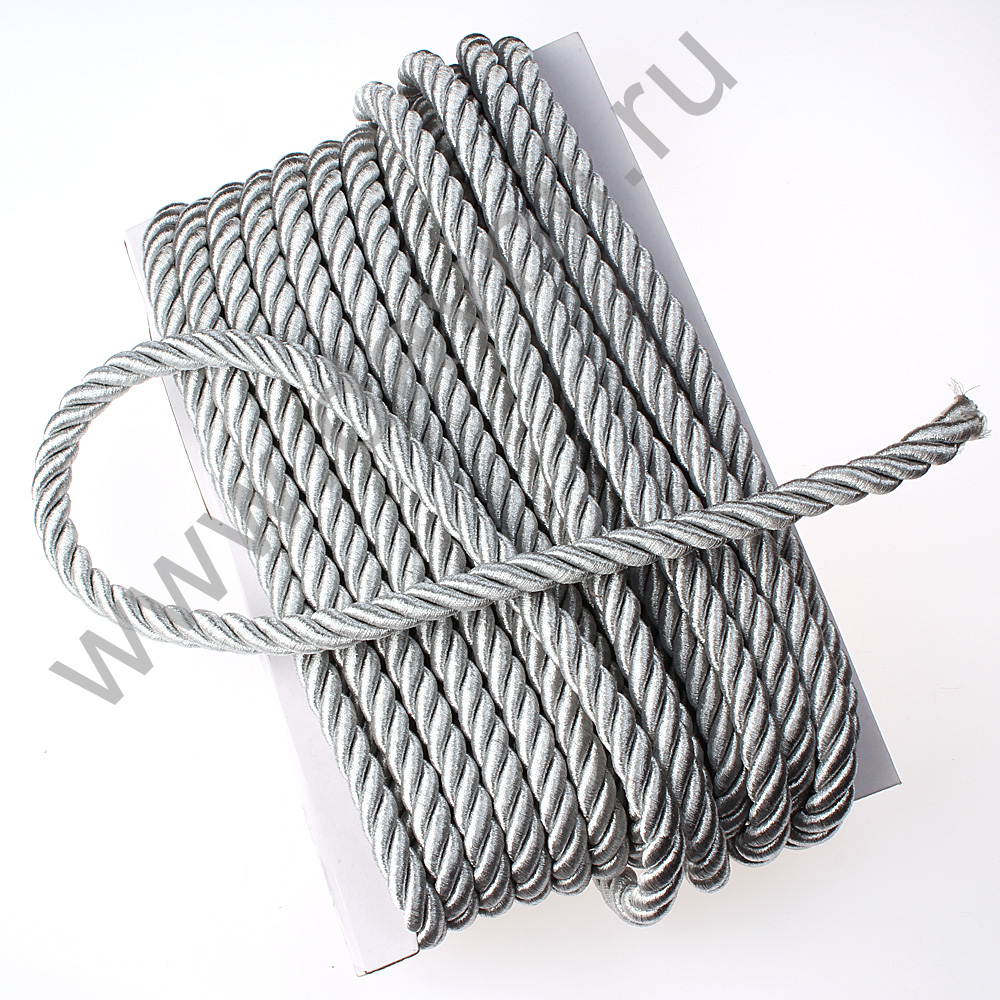 Шнур витой однотонный 12 мм 15 м серебряный 426