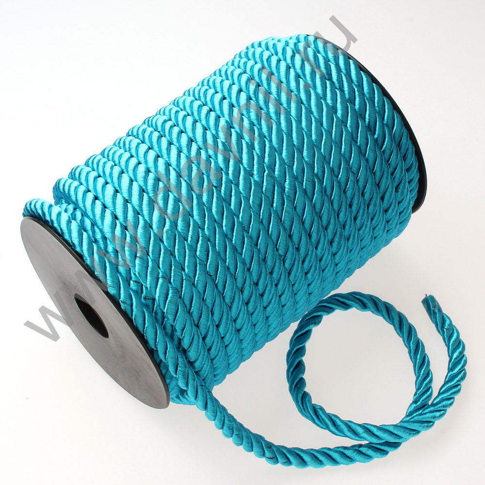 Шнур витой однотонный 8 мм 25 м бирюзовый.