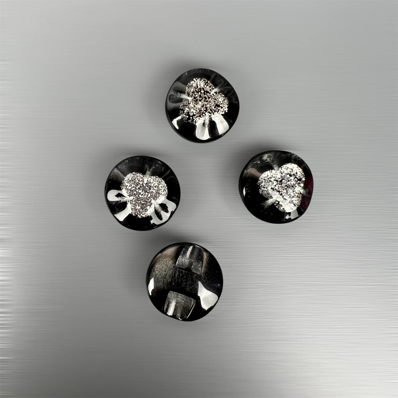 Пуговица 35 мм на ножке чёрная с серебром 50 шт