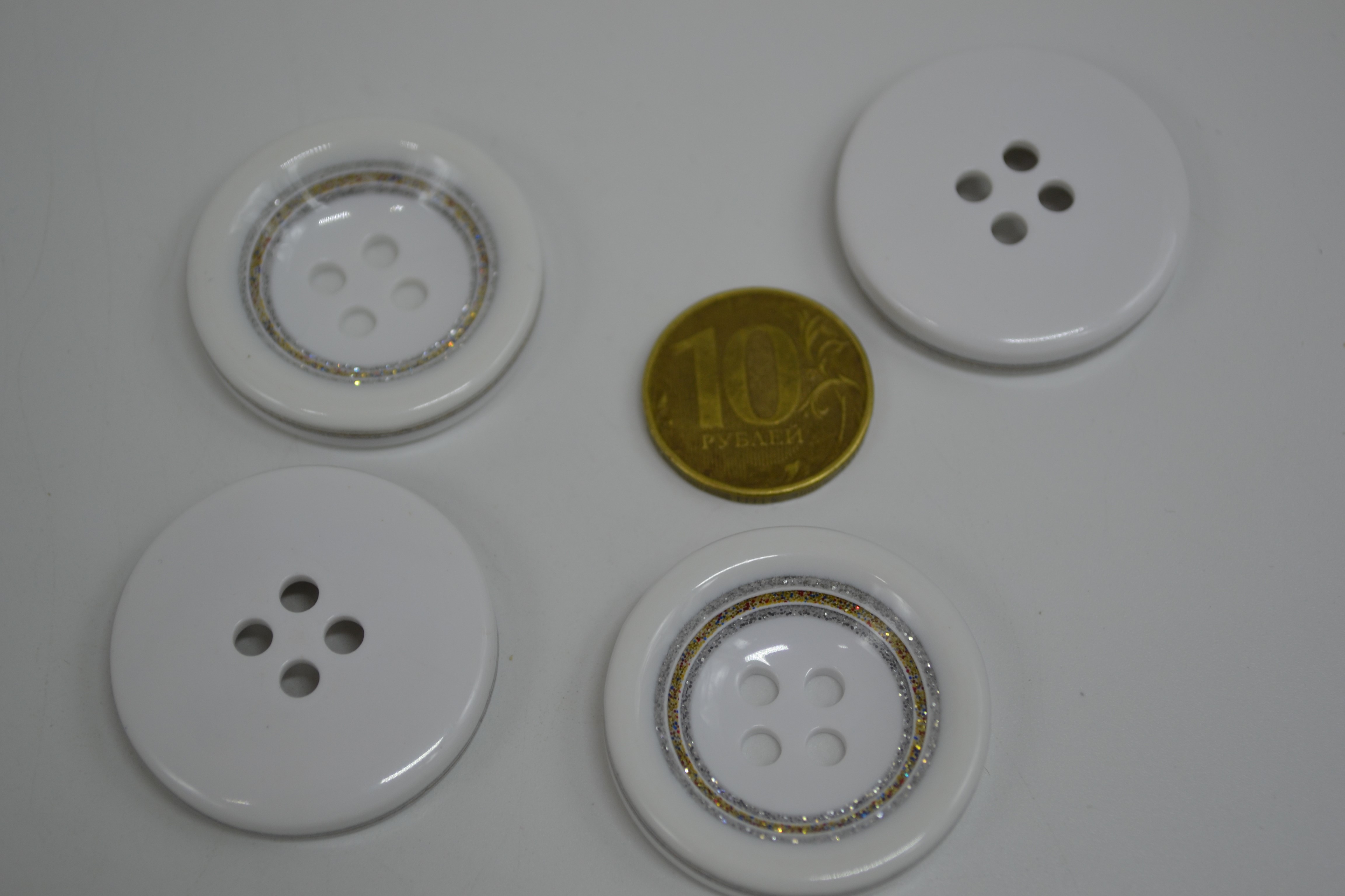 Пуговица 34 мм белая с серебряным глиттером 10 шт