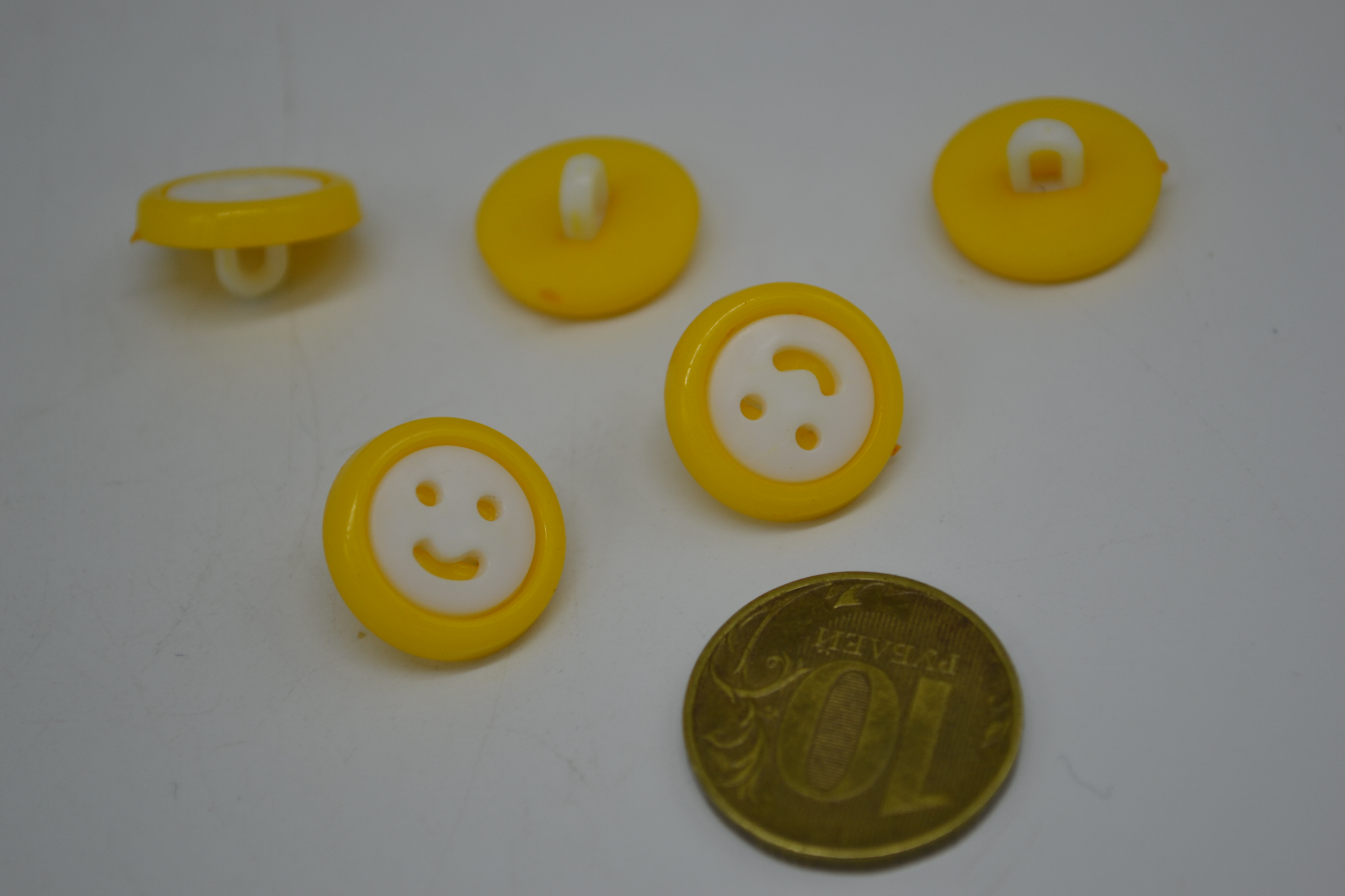 Пуговица 17 мм смайлик жёлтая 50 шт