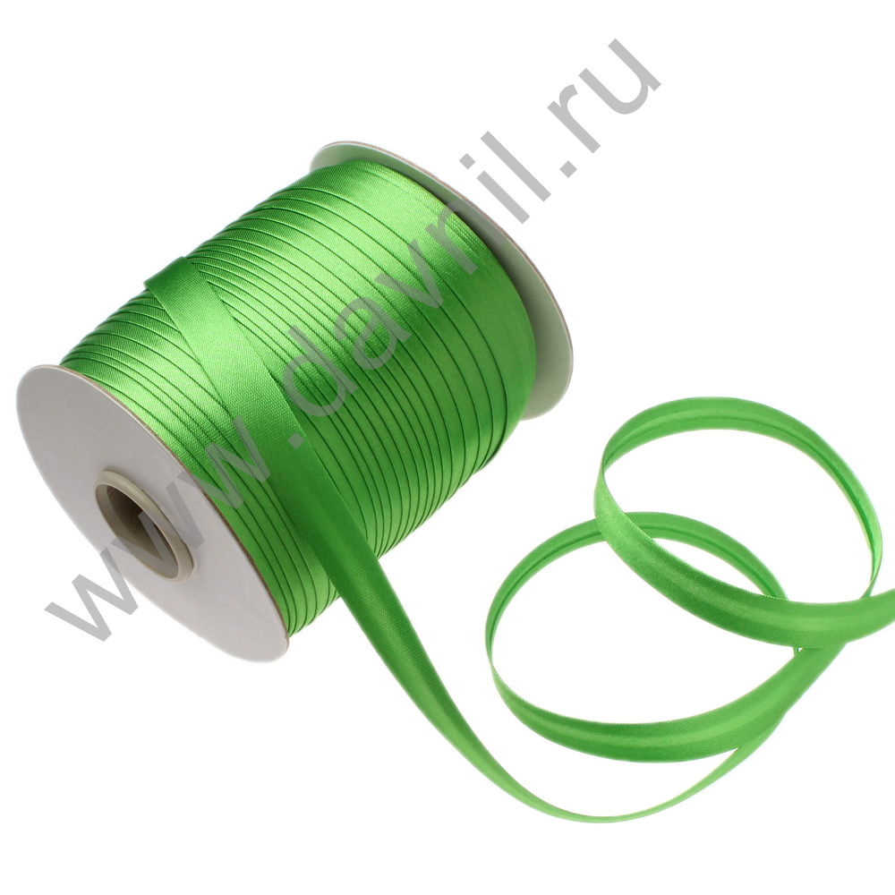 Косая бейка атласная 1,5 см 131 м зелёная 97339
