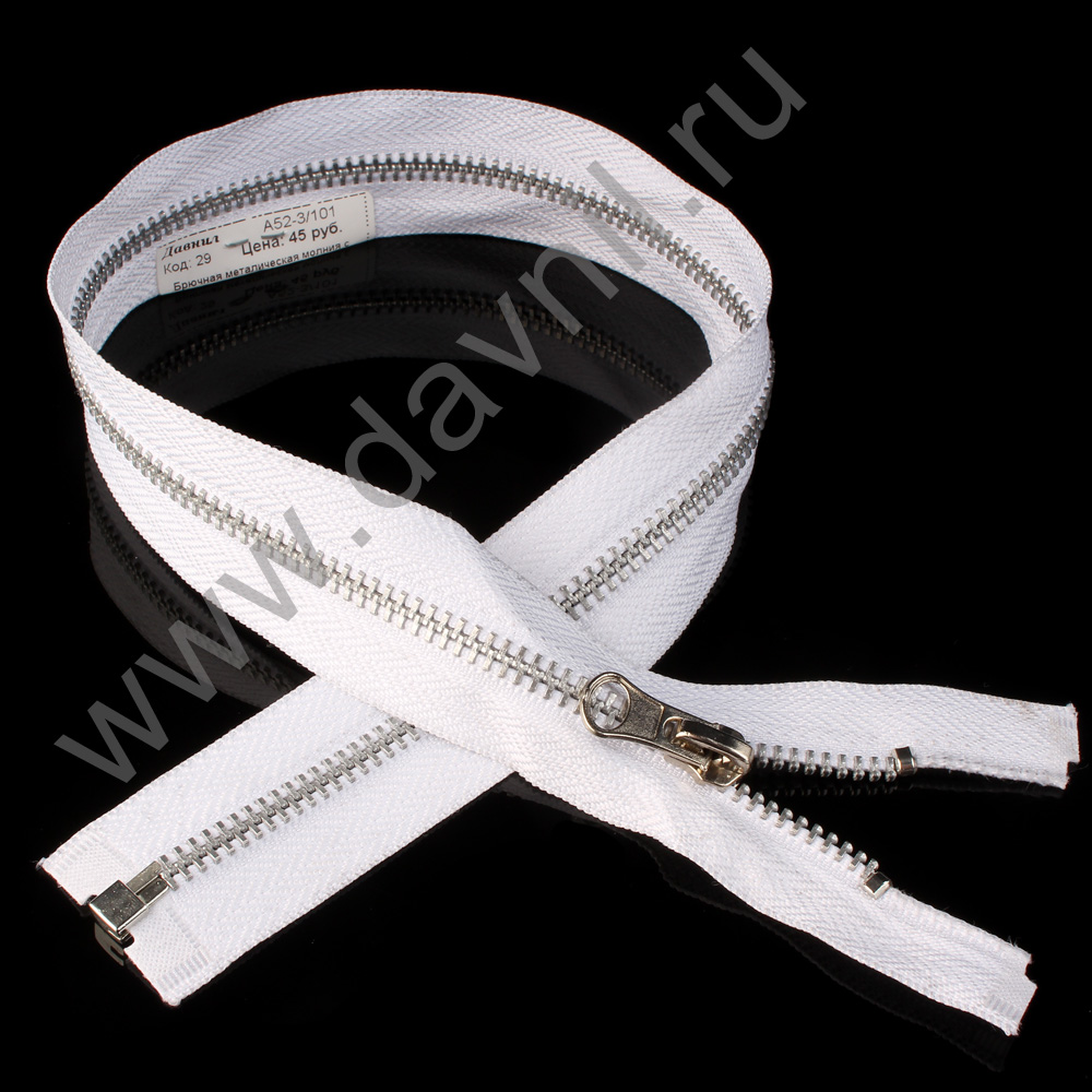 Молния металлическая с серебром 90 см белая 101 10 шт.