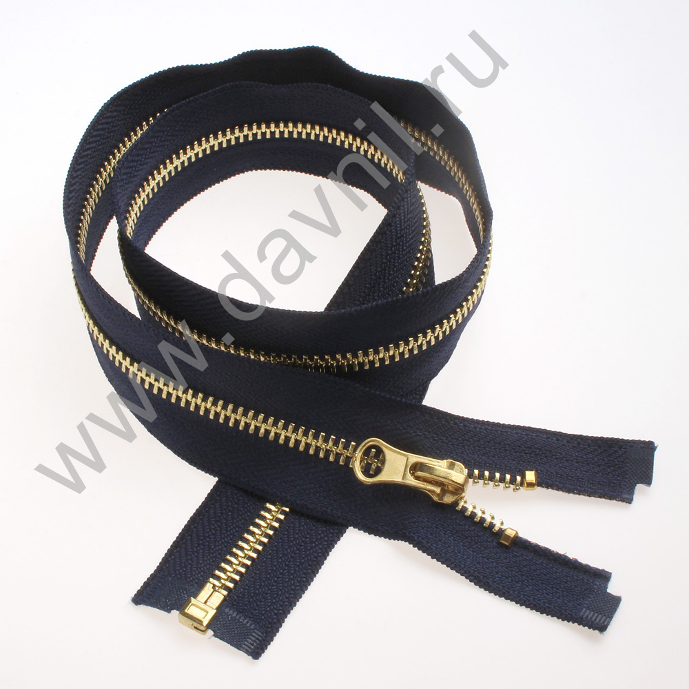 Молния металлическая с золотом 50 см синяя 570 10 шт.