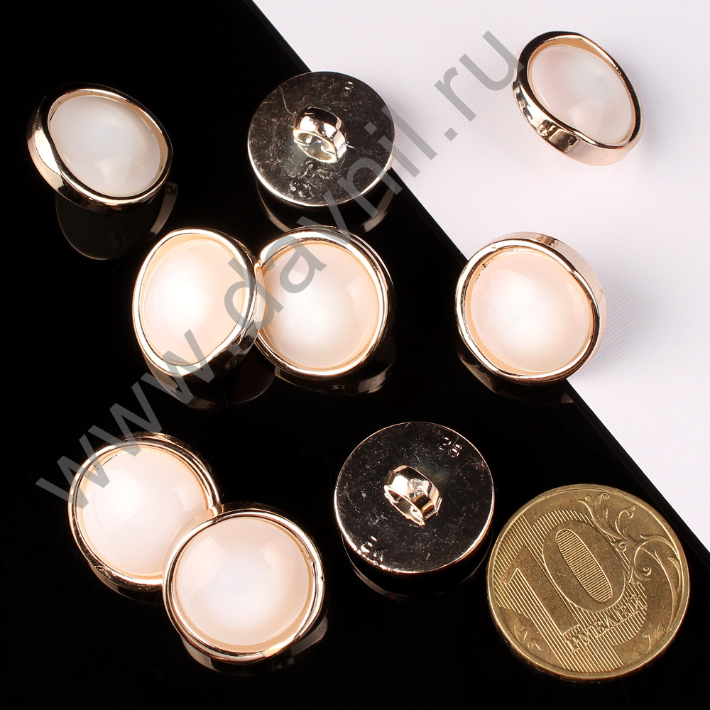 Пуговица 17 мм на ножке белый жемчуг в золотой оправе 20 шт