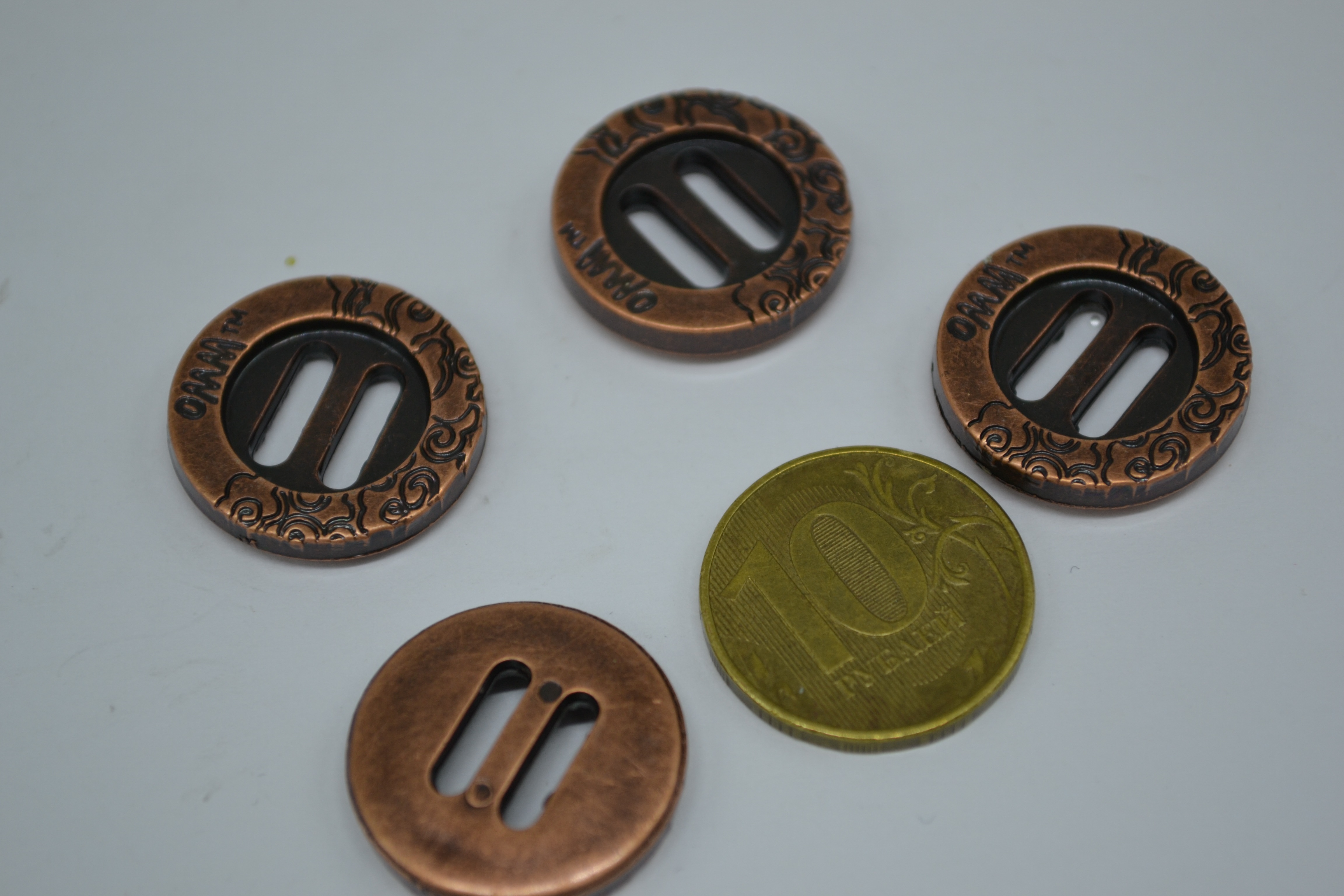 Пуговица 20 мм под металл медь с прямоугольным отверстием 140 шт
