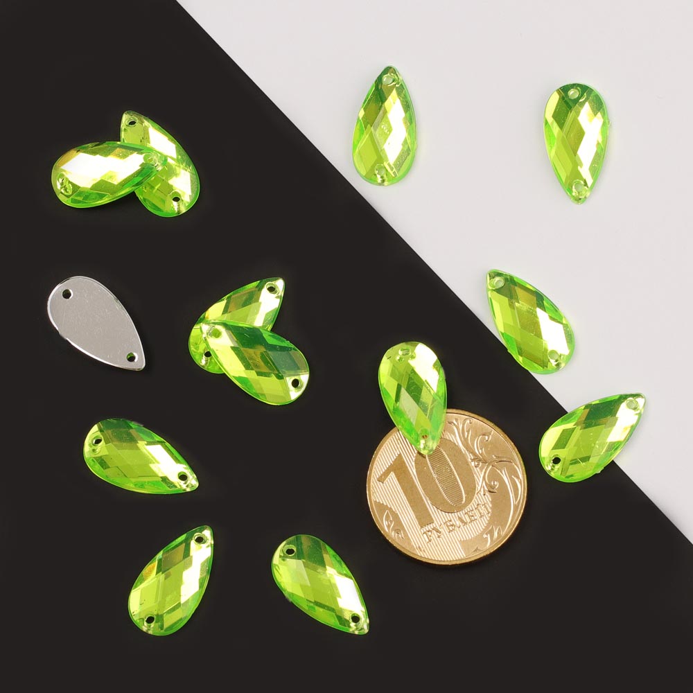 Стразы пришивные акрил "Капля" 9*17 мм 1000 шт салатовые 9