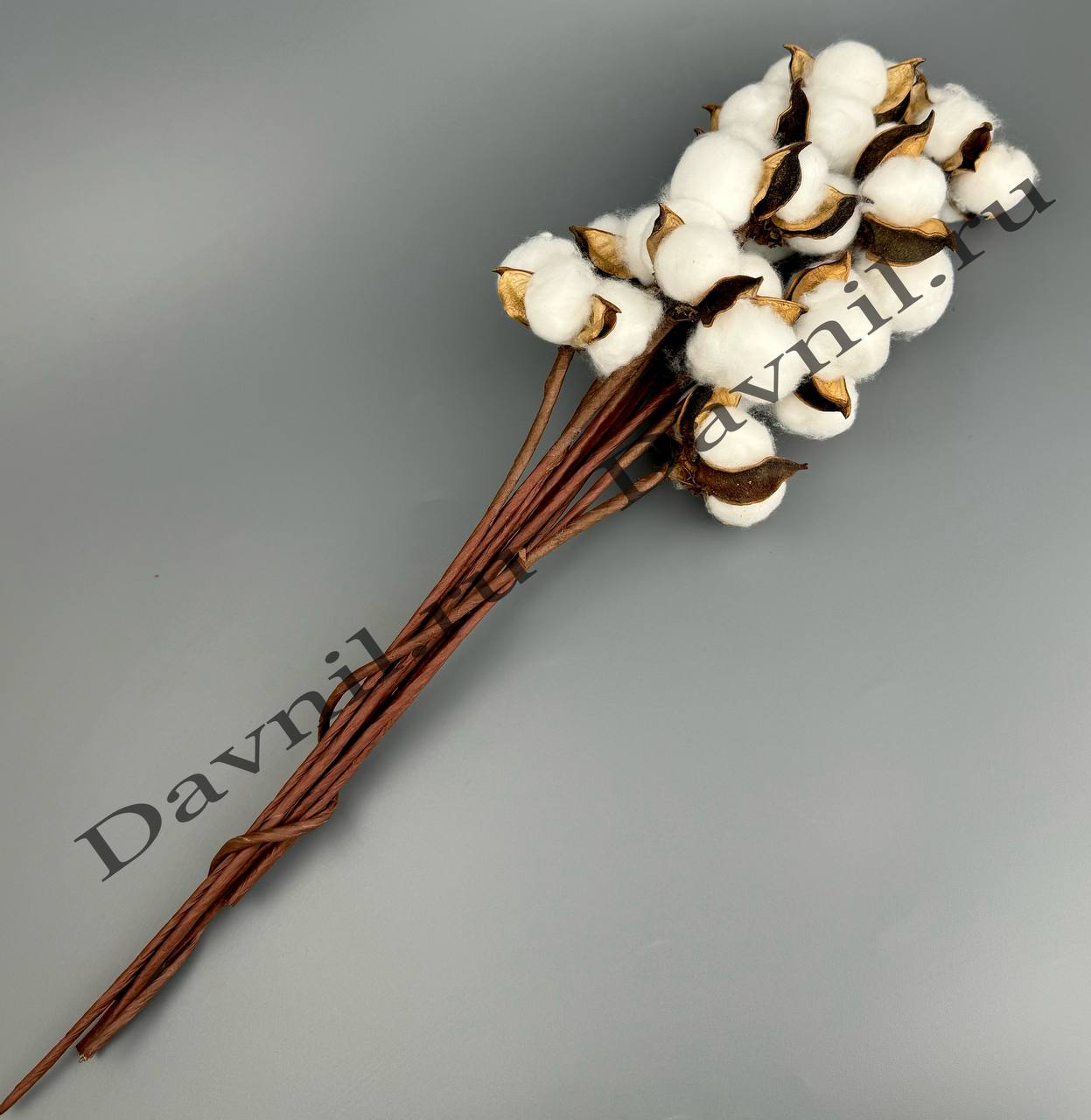 Декоративная ветка хлопка. Используют в создании цветочных композиций, в оформлении помещений. Часто используют в оформлении свадеб в стиле эко и рустик. Сочетается как с живыми, так и искуственными цветами, гармонирует с мешковиной, бусами, лентами. В 1 упаковке 10 шт. В 1 коробке 100 уп.