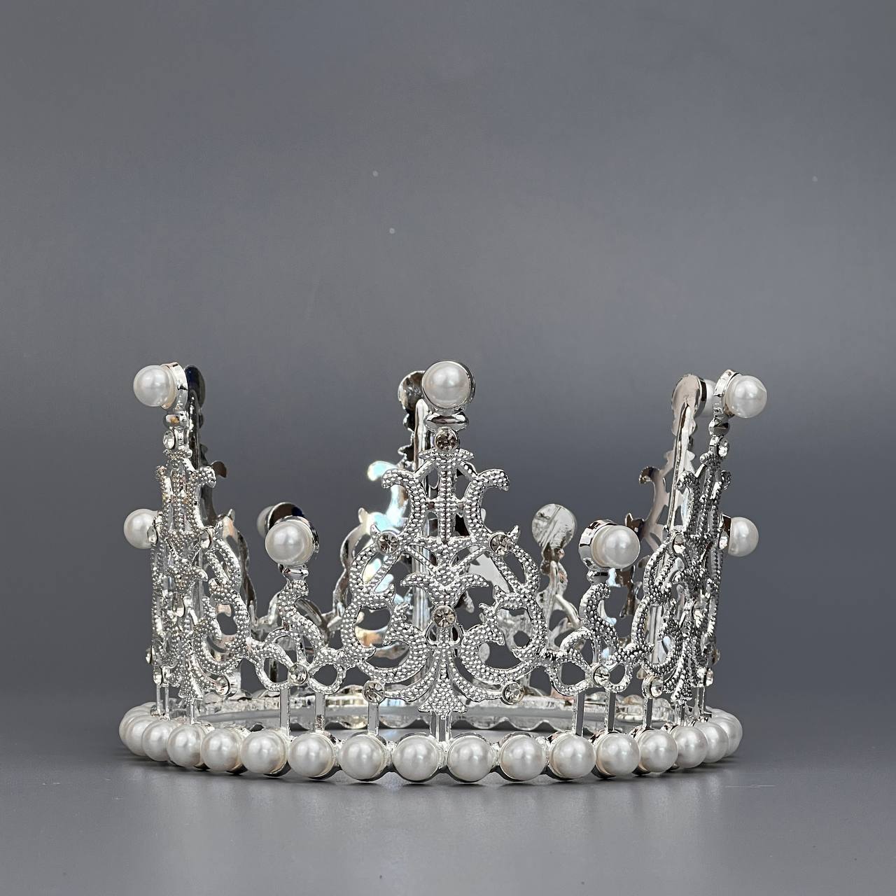 Корона серебро 11 см *7,5 см жемчуг со стразами
