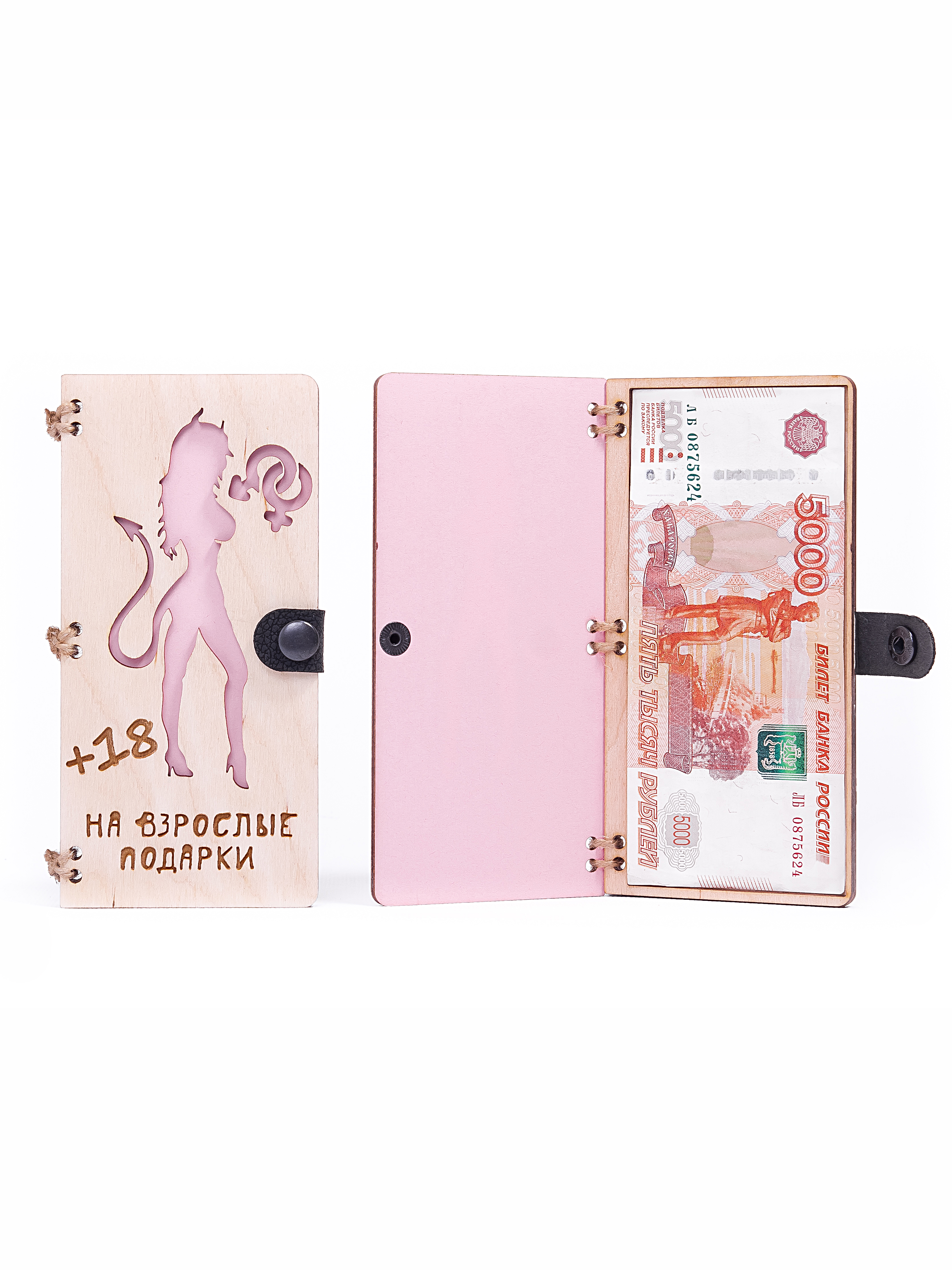 Конверт деревянный " На взрослые подарки " 18+ розовая