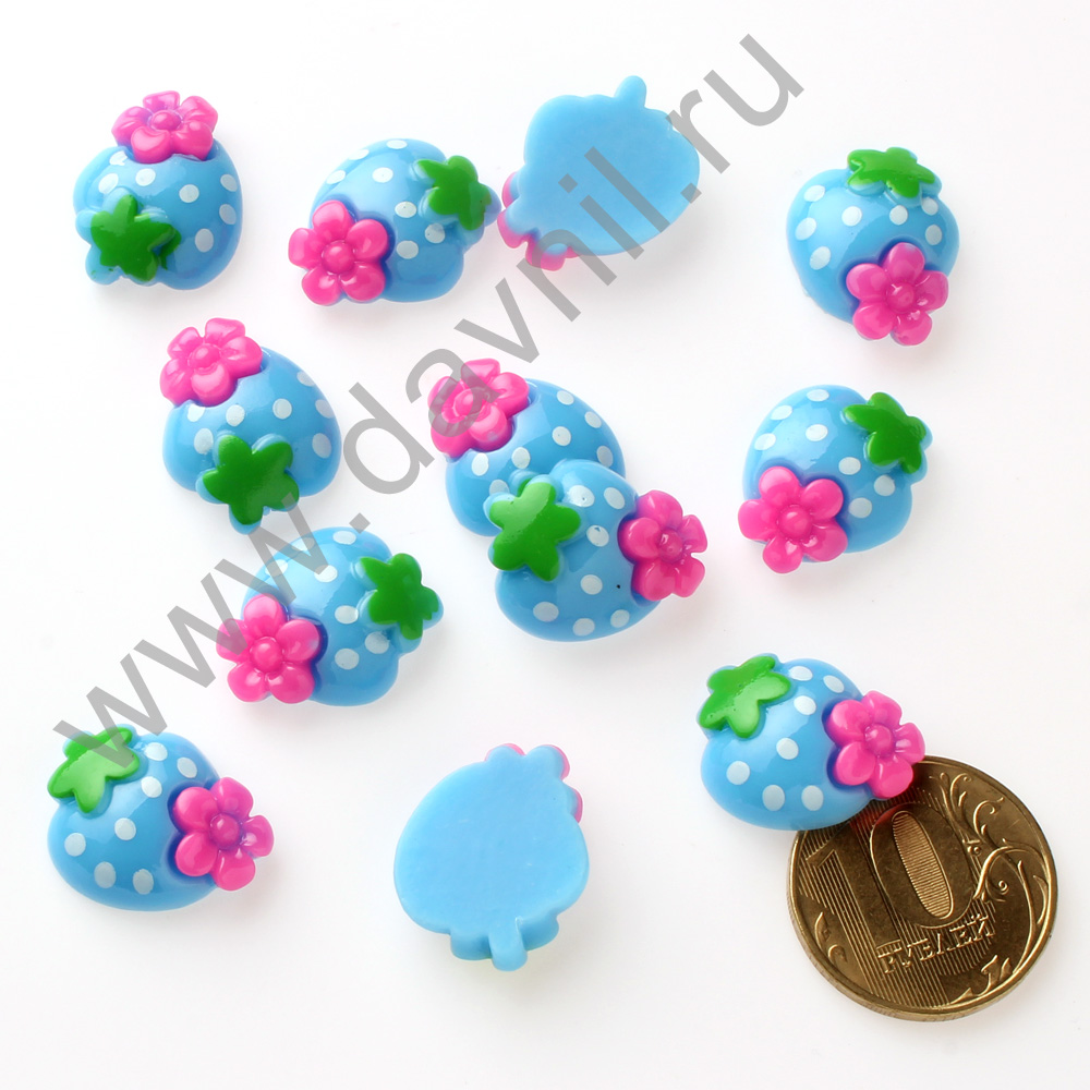 Кабошон "Клубника" 19*15 мм 500 шт голубой