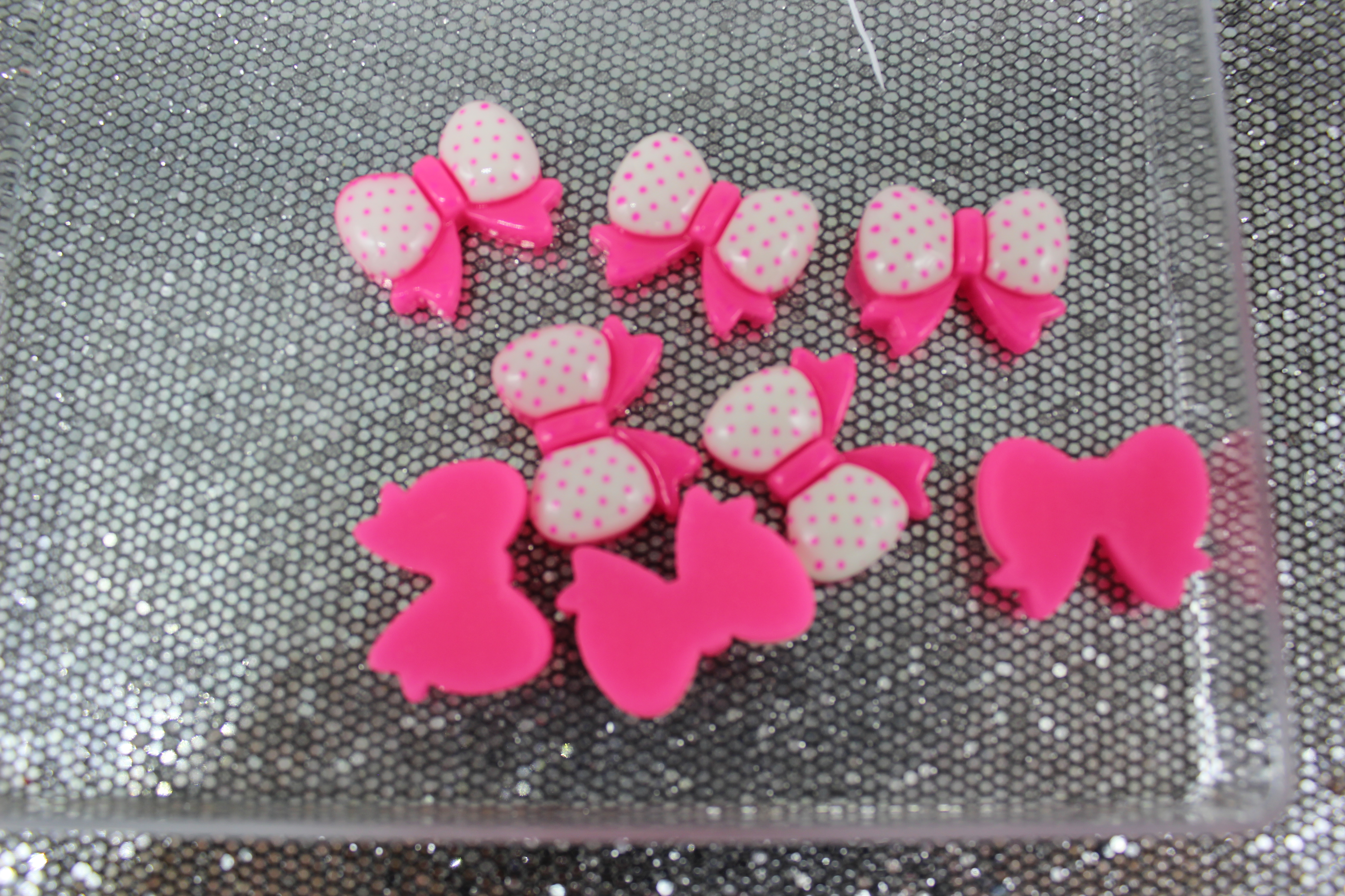 Кабошон "Бантик" 17*22 мм 20 шт. фуксия с белым