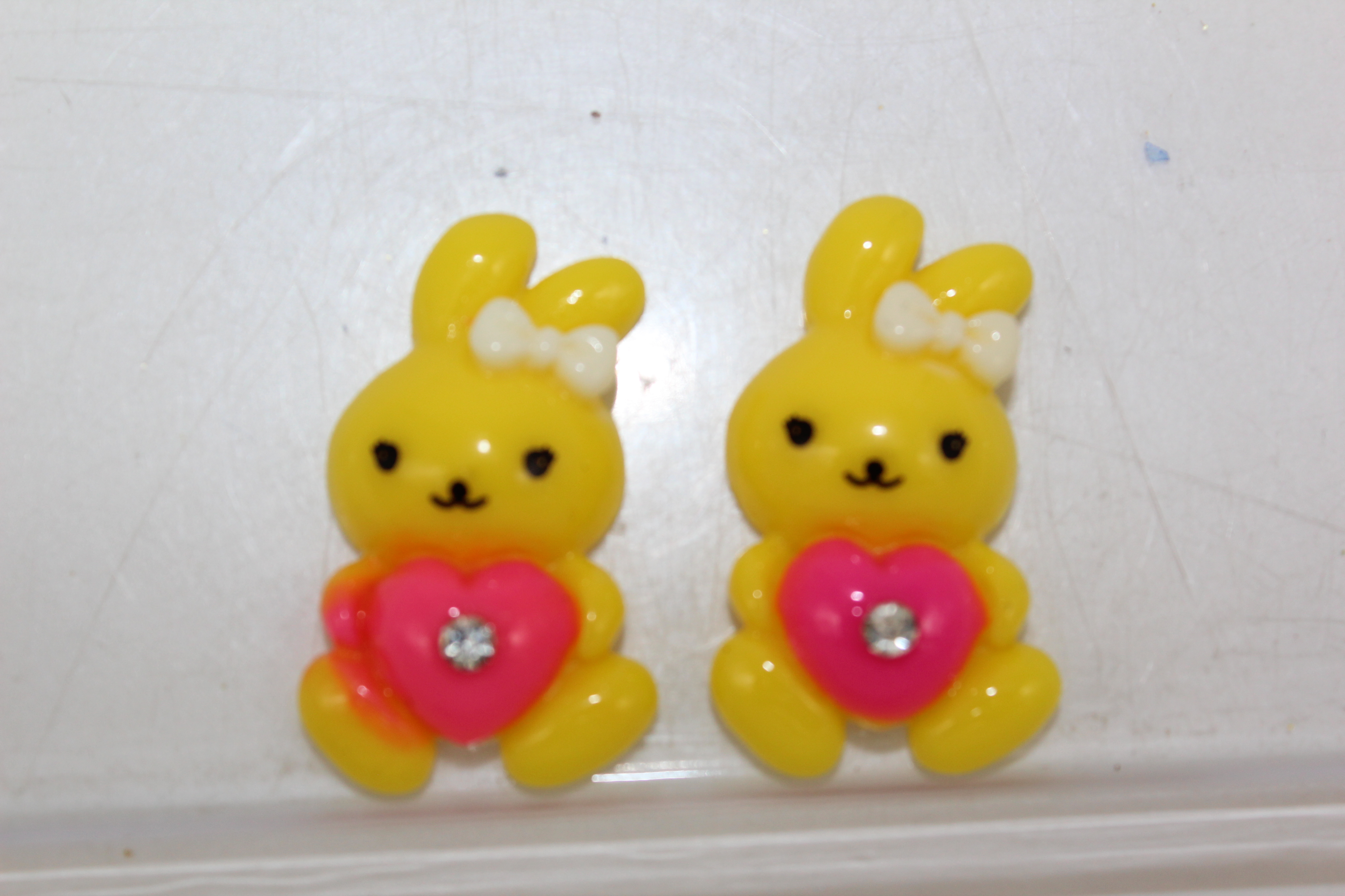 Кабошон "Зайчик с сердечком и стразиком" 40*25 мм 10 шт жёлтый