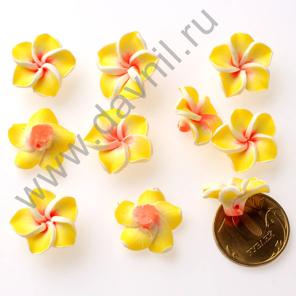 Кабошон "Лилия" из каучука 2 см жёлтый 20 шт