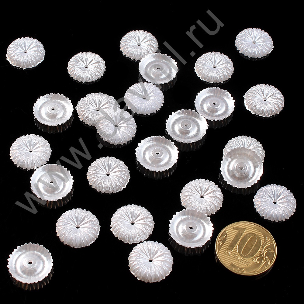 Кабошон цветок 15 мм с отверстием 100 шт шампань
