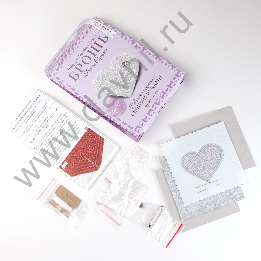 В СОСТАВЕ НАБОРА: фетр с нанесённым изображением (вышивка без пялец), бисер калиброванный, рубка, бусины (имитация жемчуга), иглы швейные, кожа искусственная, картонные заготовки, нити специализированные, основа для броши (заколка), мастер-класс (пошаговая инструкция с фото).